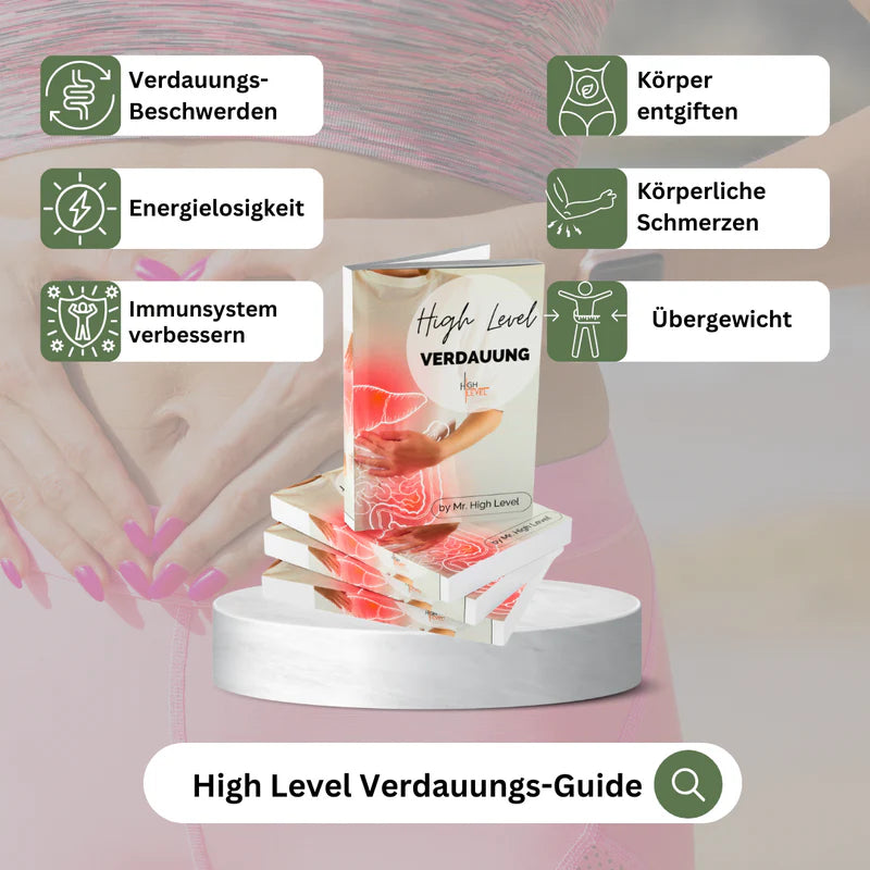Unser Guide ist die perfekte Lösung für alle, die auf natürlichem Wege ihre Verdauung verbessern möchten, ohne auf chemische Mittel oder Medikamente angewiesen zu sein. Durch einfache Anpassungen in der Ernährung und das Umsetzen unserer leicht nachvollziehbaren Rezepte wirst du schon bald spüren, wie sich dein Wohlbefinden verbessert. Du wirst dich nicht nur energiegeladener und vitaler fühlen, sondern auch deinem Körper die Möglichkeit geben, sich auf natürliche Weise zu regenerieren und zu stärken. Mit jedem Schritt, den du mit unserem Guide gehst, kommst du deinem Ziel eines gesunden, ausgeglichenen Körpers näher. Starte noch heute, entdecke die Kraft einer gesunden Verdauung und bringe deinen Körper und Geist auf das nächste Level. Lass uns gemeinsam die höchste Stufe deiner Gesundheit erreichen – für mehr Energie, Wohlbefinden und ein Leben ohne Beschwerden.