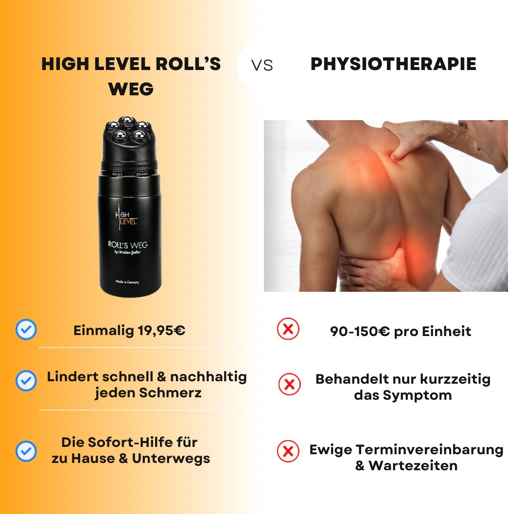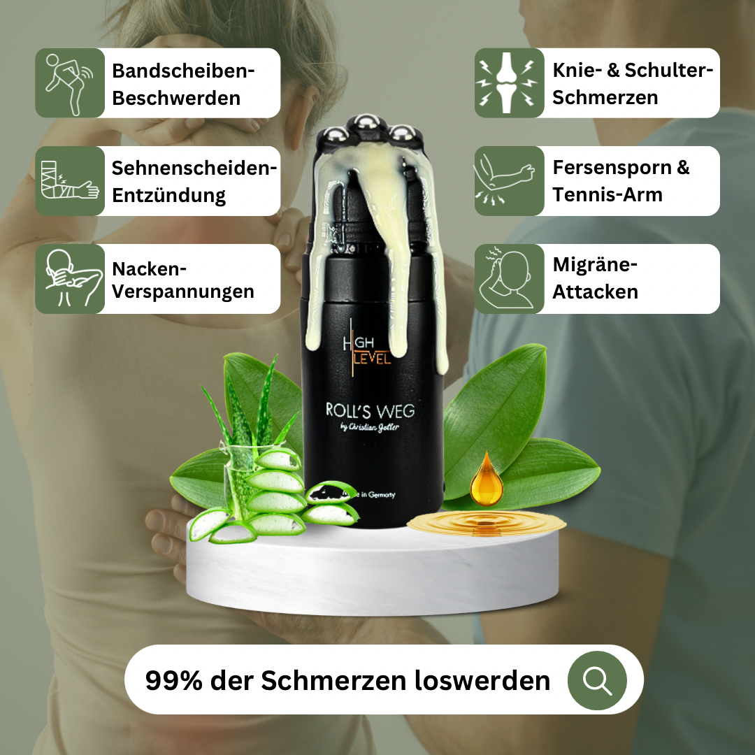 Im Gegensatz zu herkömmlichen Schmerztabletten und anderen Cremes behandelt das High Level Roll´s weg die Ursache der Schmerzen.