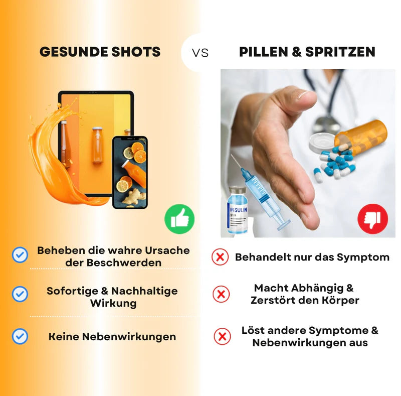 Fast 50% aller Menschen nehmen regelmäßig Medikamente um chronische Beschwerden aller Art loszuwerden. Mit den gesunden Shots hast du die natürliche Lösung für jedes Problemen sofort zur Hand.